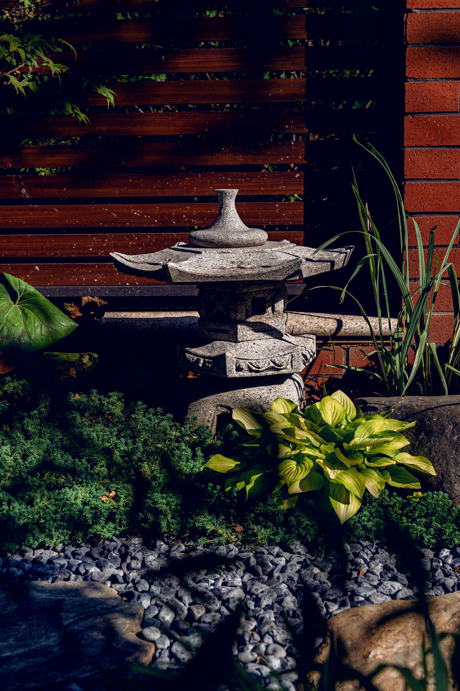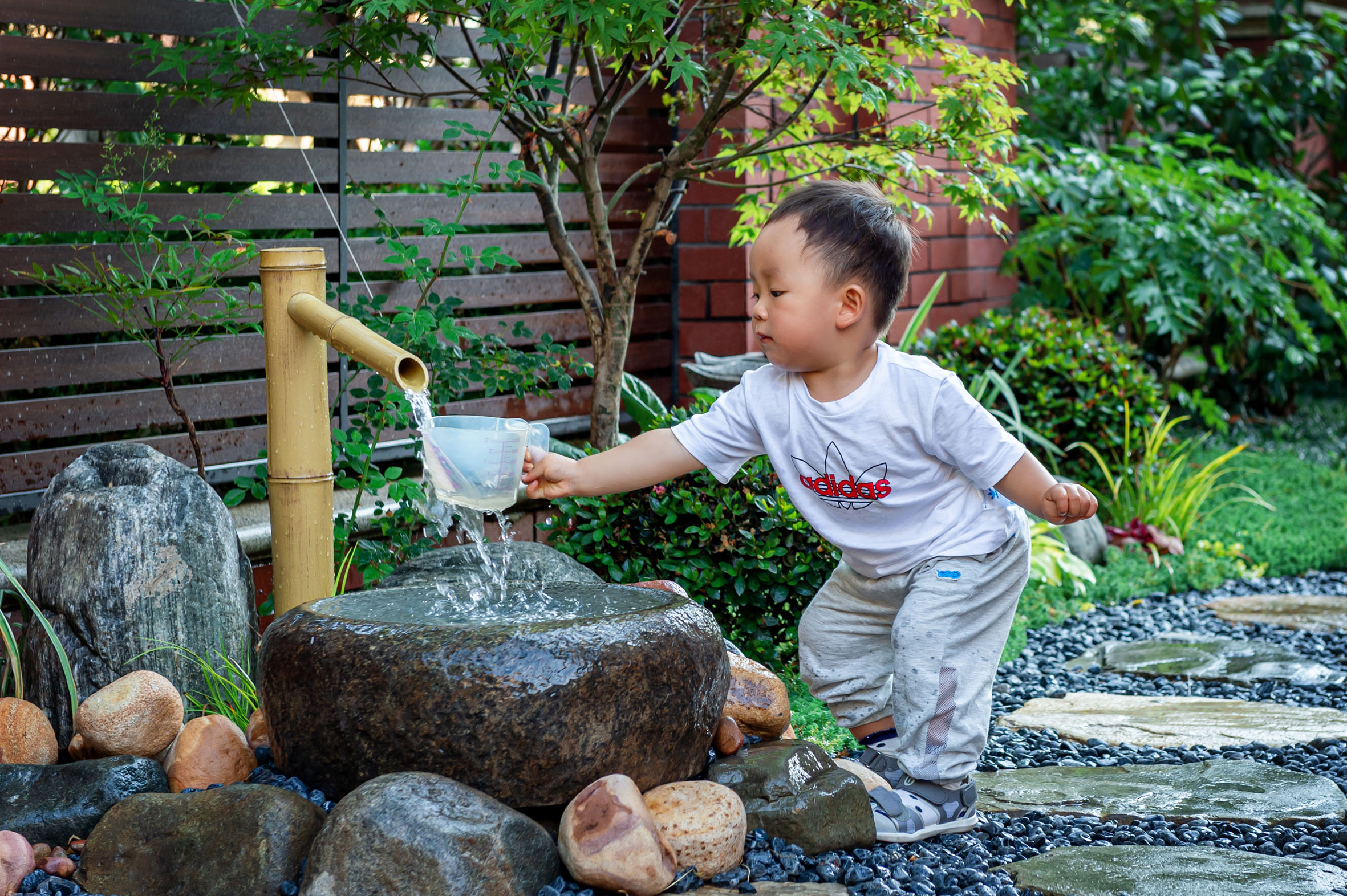 轉(zhuǎn)角處的南院以日式水缽、石燈、自然汀步等元素打造日式自然景觀,讓原本荒棄的角落重新煥發(fā)生機。日本紅楓、耐冬、大葉吳風(fēng)草、礬根、杜鵑球等植物營造富有四季變化的綠化組合。在植物和光影的交織中漫步花園,感悟自然和生活的美好。