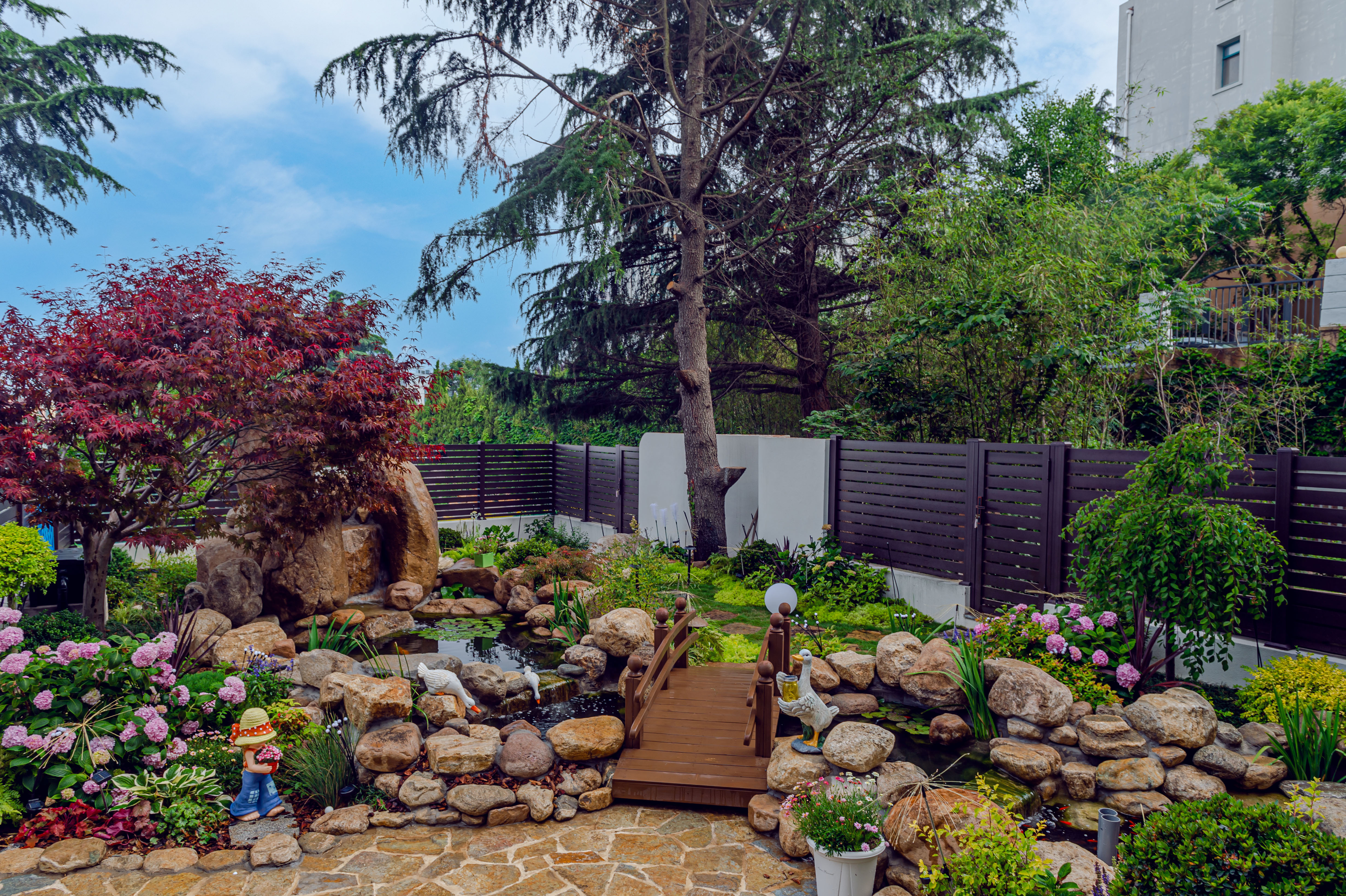 貫穿整個花園的自然水系,成為主要的觀景視覺點。