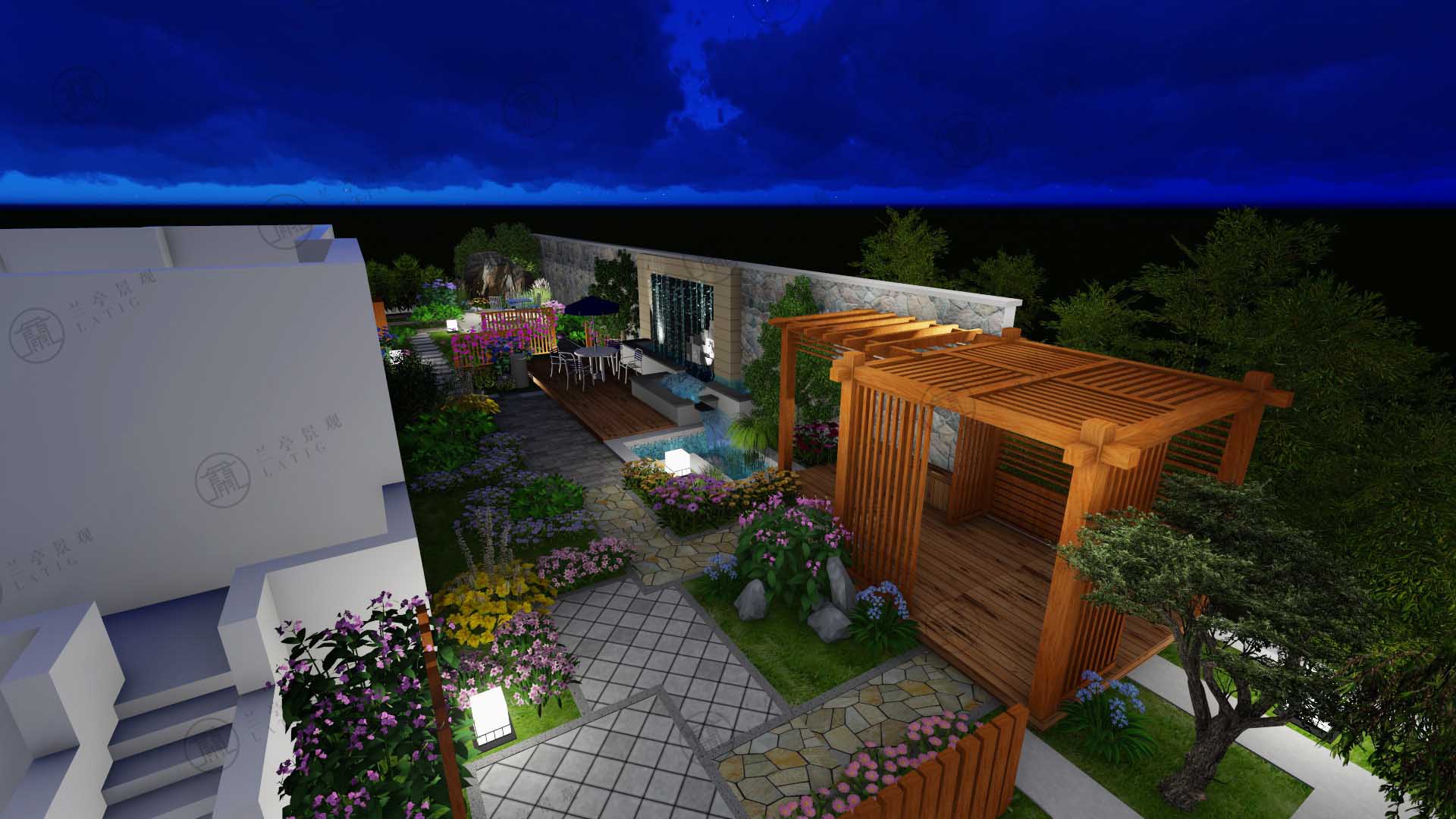 首先,確定庭院的簡中式風(fēng)格,偏灰調(diào)。根據(jù)庭院中原有的水系建造水幕墻,使水“活起來”,讓整個高墻不再單調(diào);留出足夠的種植空間及陽光草坪,讓喜愛植物的戶主感受到植物的環(huán)繞;此外,我們也在夜景上下了功夫,柔和的燈光投射到植物上,營造出令人舒適的空間。