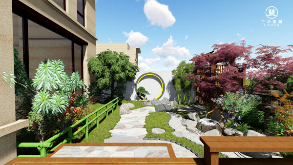 屬性:庭院效果圖 庭院面積:200㎡以下 庭院設計風格:日式禪意