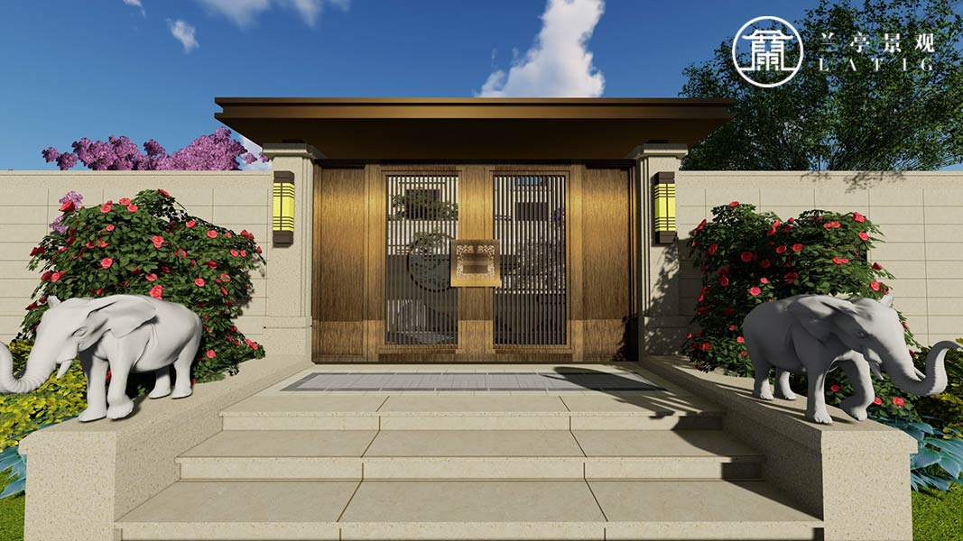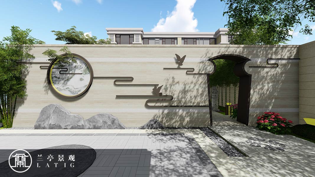 映入眼簾的是遠(yuǎn)山靜月的照壁景墻,一而是花港觀魚的景亭,一而是寶瓶式的入戶門,