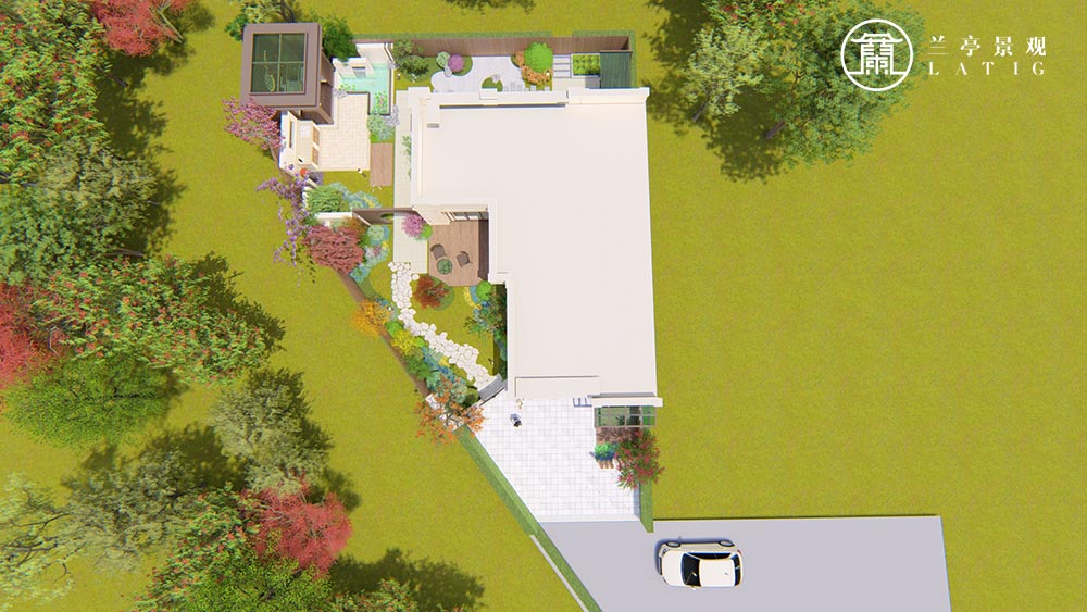 屬性:庭院效果圖 庭院面積:200-500㎡ 庭院設計風格:現代簡約