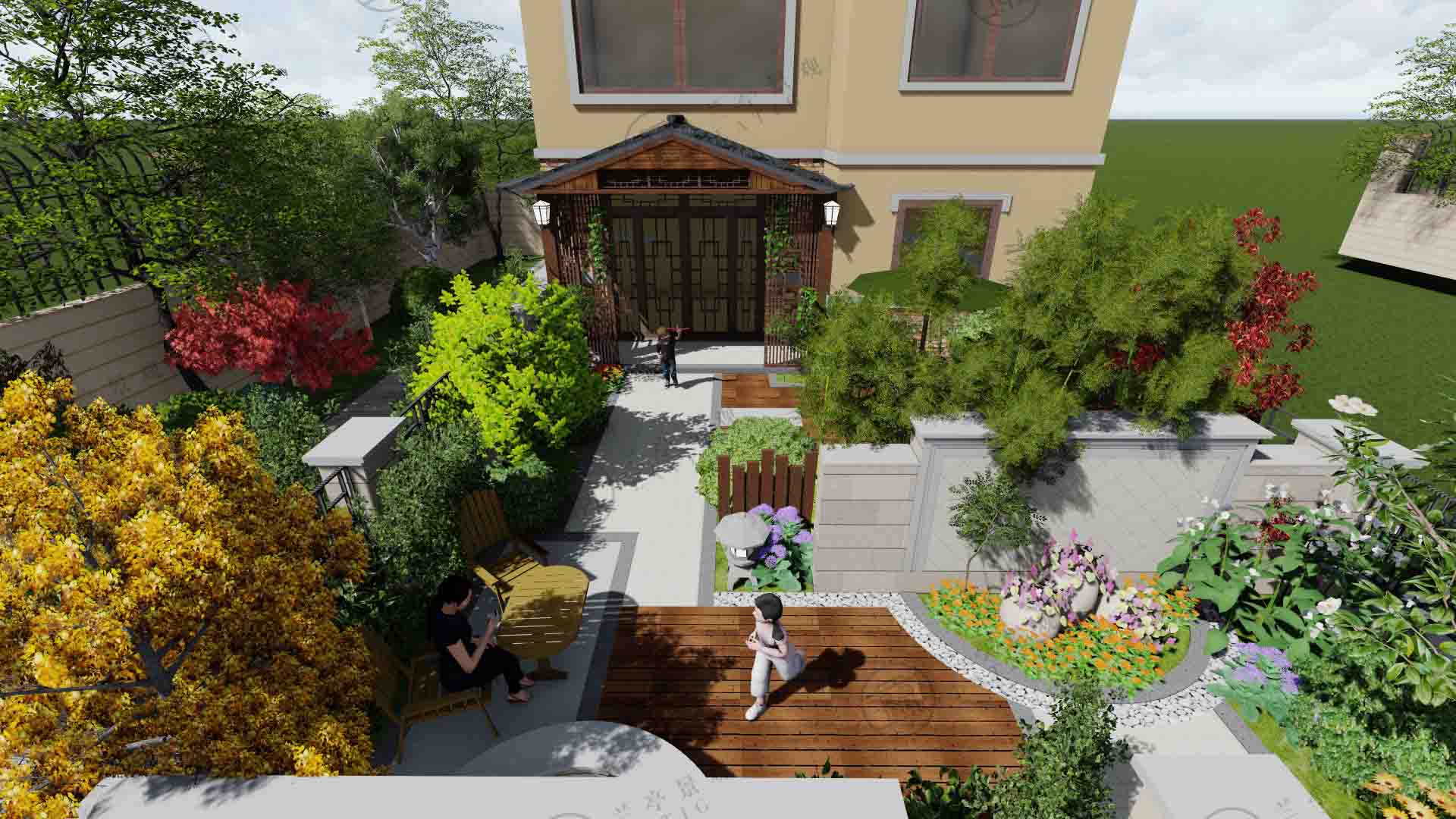 在S宅的改造上,從外圍到私人空間,我們提出了一整套改造方案。根據戶主的要求,把建筑入戶大門建造的更美觀大氣;增設小疊山水景,旁邊設置別致的兩人座,并在原有鋪裝的基礎上增加木制作,水、木、石和諧搭配;在景墻后面構造出優美空間,木質甲板上擺放餐桌餐椅;弧形坐凳讓人身處綠植懷抱,植物的配置也重點突出紅色,萬綠叢中一點紅。
