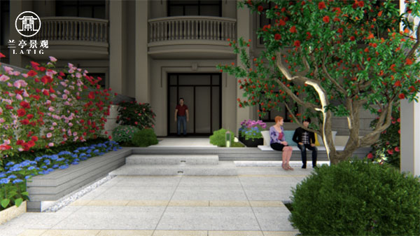 項目花園設計的定位是輕奢現代風,和室內風格搭配的同時便于打理是初衷。