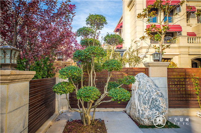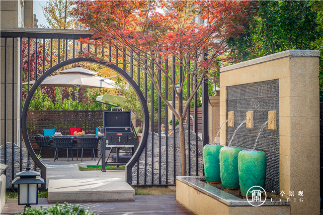 設(shè)計(jì)師在后花園的設(shè)計(jì)上,移步易景,宛約如畫的紅楓樹,簡約而不簡單的月亮門,清香怡人的戶外木鋪,別具一格的對景墻,千里尋到的造型松,巧奪天工的造型石……無一不是花費(fèi)了太多的斟酌與功夫。置身其中,無論從哪一個(gè)角度去看,都能展現(xiàn)完美的風(fēng)景。