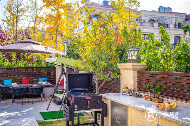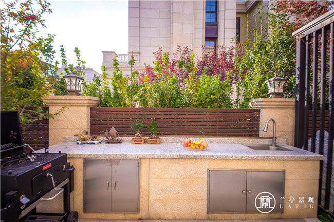 設(shè)計(jì)師在臨近休閑區(qū)的一塊區(qū)域,專門設(shè)計(jì)了戶外料理區(qū),以便于業(yè)主與親友休閑之后的用餐。料理區(qū)的設(shè)計(jì),遵從了純正西式的做法,尚流而高雅。同時(shí),環(huán)目四望,亦是風(fēng)景入簾,境悅心田。