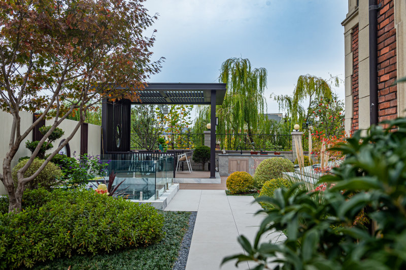 屬性:庭院實景案例 庭院面積:200-500㎡ 庭院設計風格:新中式