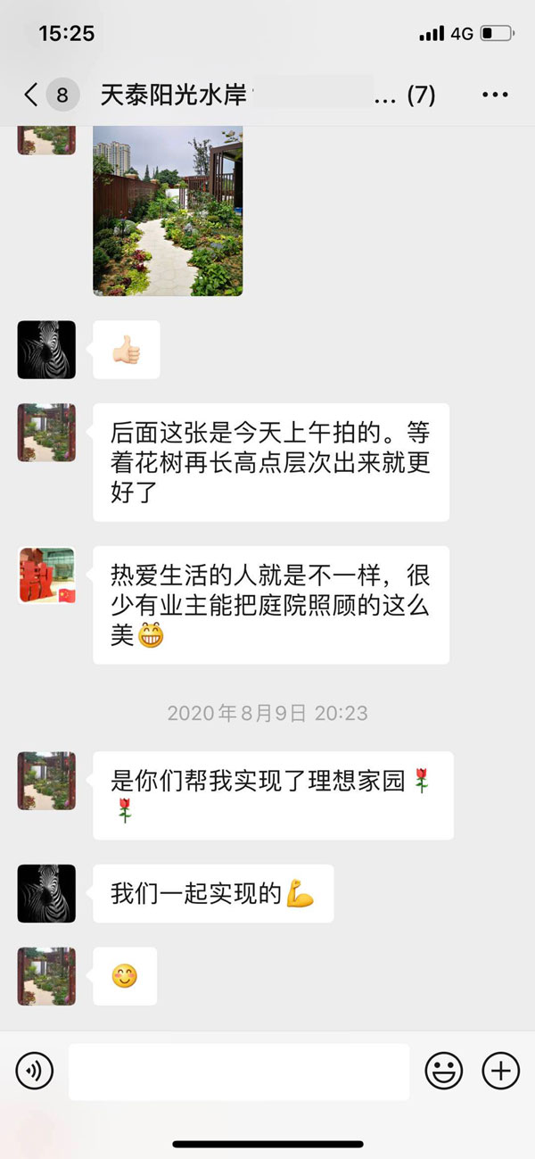 客戶的認可,是對我們工作莫大的鼓舞 來源: 點擊次數:3713 發布時間:2020/8/10 15:04:03 客戶的認可,是對我們工作莫大的鼓舞。打造美好花園,筑就幸福生活。歡迎來蘭亭景觀體驗我們不一樣的服務。