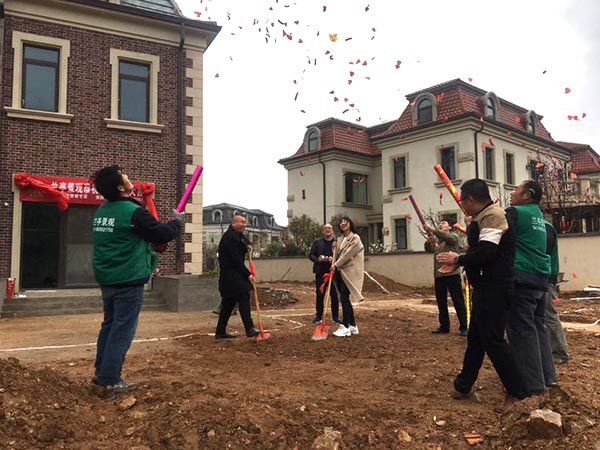蘭亭景觀孫總攜設計部、工程部、營銷部的項目負責人員提前到達現場,恭賀業主庭院景觀項目開工大吉! 伴隨著禮花綻放,鏟土儀式準時開始。俗話說“春雨貴如油”,它也及時趕來參加這場歡慶典禮,為業主歡呼添彩!