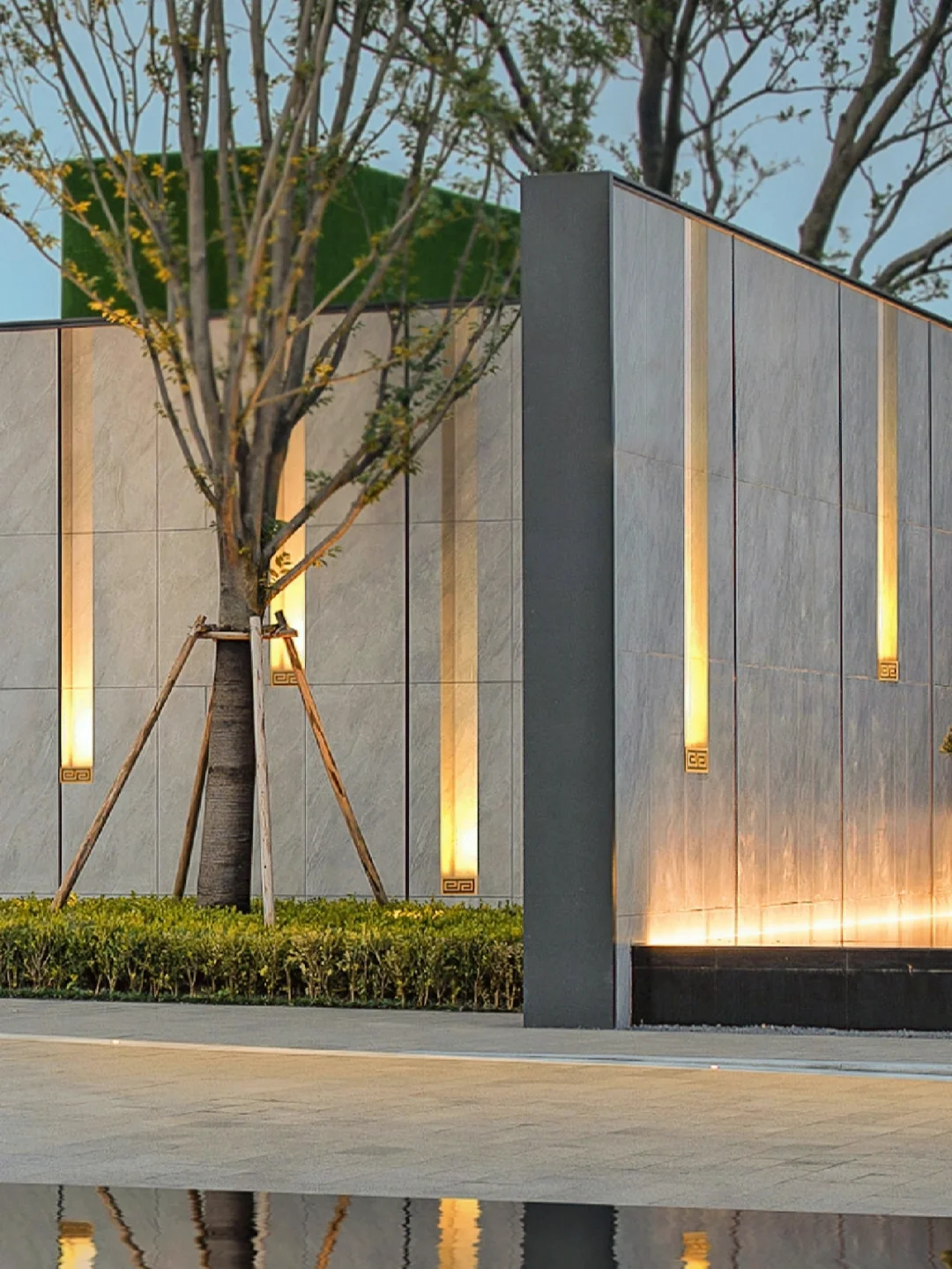 壁燈在室外區(qū)域提供一般照明或裝飾,它們有助于在整個(gè)空間內(nèi)均勻分布光線,消除暗角并提供整體亮度。通常與其他光源結(jié)合使用,以營造光線充足的環(huán)境;突出顯示功能、藝術(shù)品或建筑元素,為空間增添點(diǎn)綴感。