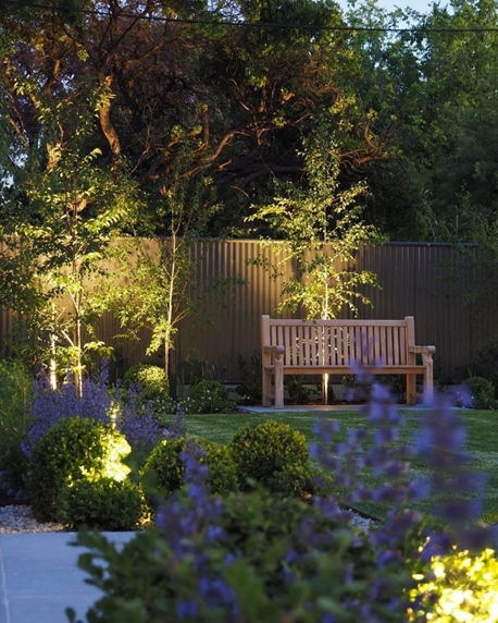 低矮灌木不適合近距離投光照明,容易破壞灌木形體的完整性,所以我們可以使用下照式草坪燈,從上方打光,遠(yuǎn)距離投射,保持灌木形體的完整。