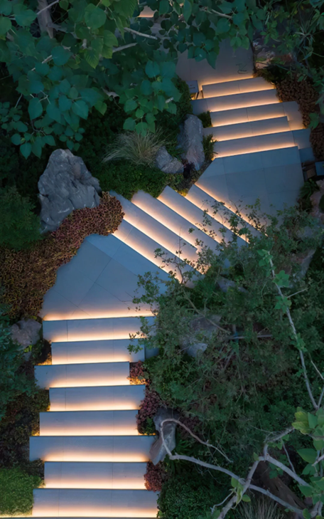 對于庭院來說,燈光仿佛第二次生命,不僅能烘托氛圍,還能聚集視覺,將自然的生命力貫穿其中。